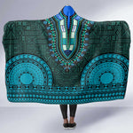 Teal Dashiki and Tapa Pattern Hooded Blanket Africa-Polynesia Together Culture
