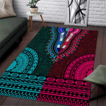 Teal-pink Dashiki and Tapa Pattern Area Rug Africa-Polynesia Together Culture