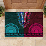 Teal-pink Dashiki and Tapa Pattern Rubber Doormat Africa-Polynesia Together Culture