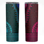 Teal-pink Dashiki and Tapa Pattern Skinny Tumbler Africa-Polynesia Together Culture
