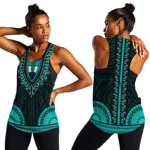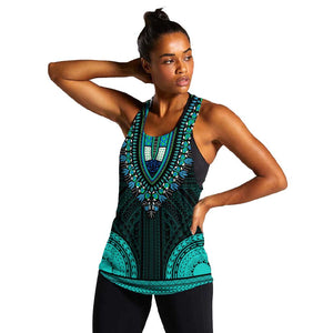 Vendor:African PrideAfrican Dashiki and Polynesian Pattern Women Racerback Tank Teal LT9