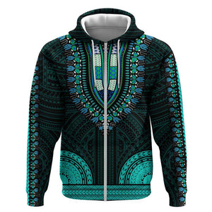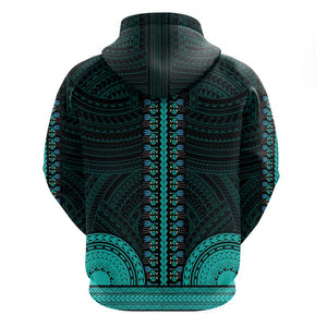 Vendor:African PrideAfrican Dashiki and Polynesian Pattern Zip Hoodie Teal LT9