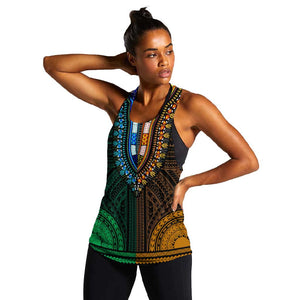 Vendor:African PrideAfrican Dashiki and Polynesian Pattern Women Racerback Tank Half Green-Gold LT9