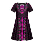 African Dashiki and Polynesian Pattern Kid Short Sleeve Dress Pink