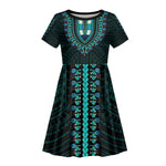 African Dashiki and Polynesian Pattern Kid Short Sleeve Dress Teal