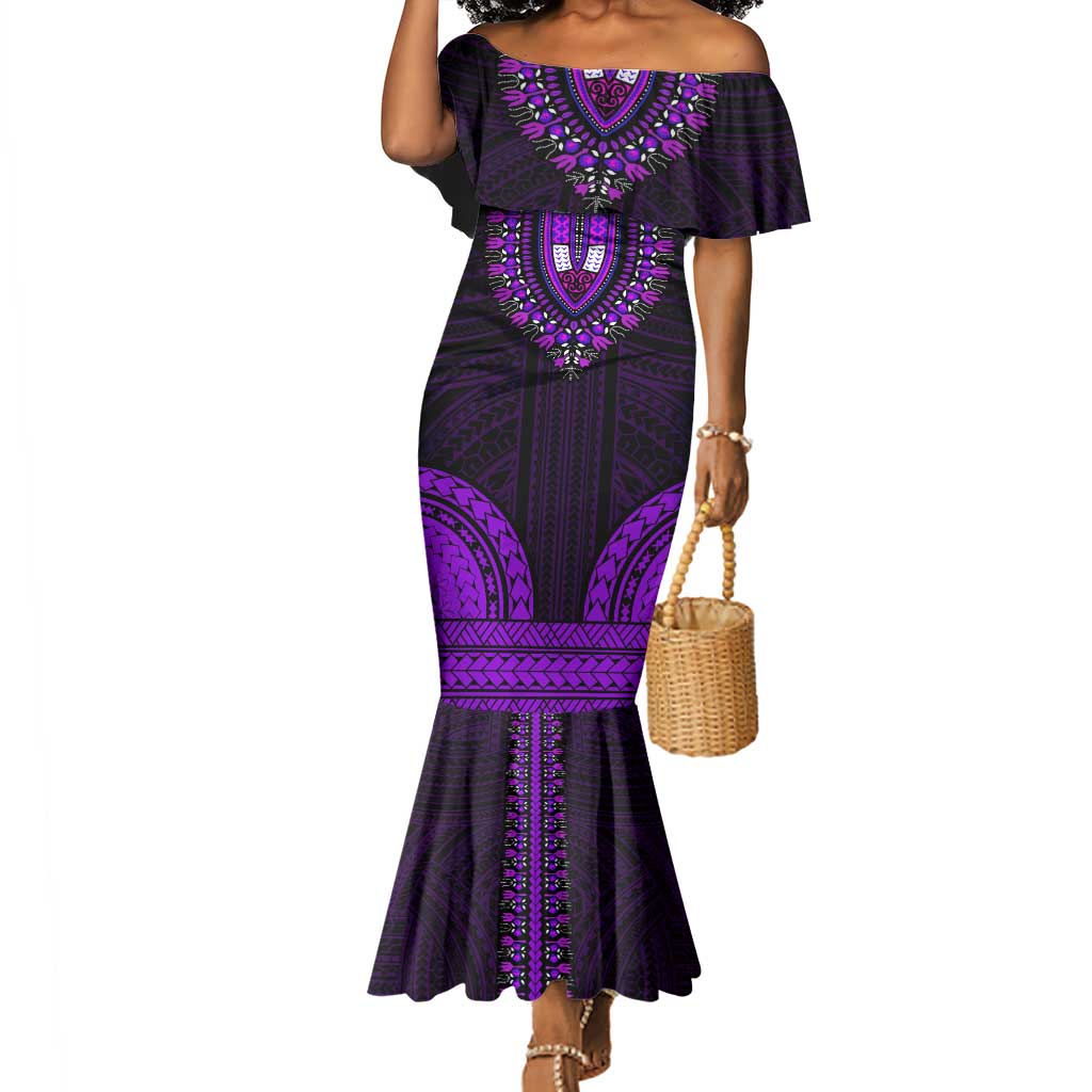 African Dashiki and Polynesian Pattern Mermaid Dress Purple