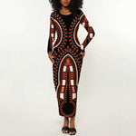 African Dashiki Long Sleeve Bodycon Dress Afro Vintage Pattern