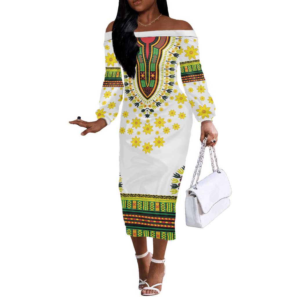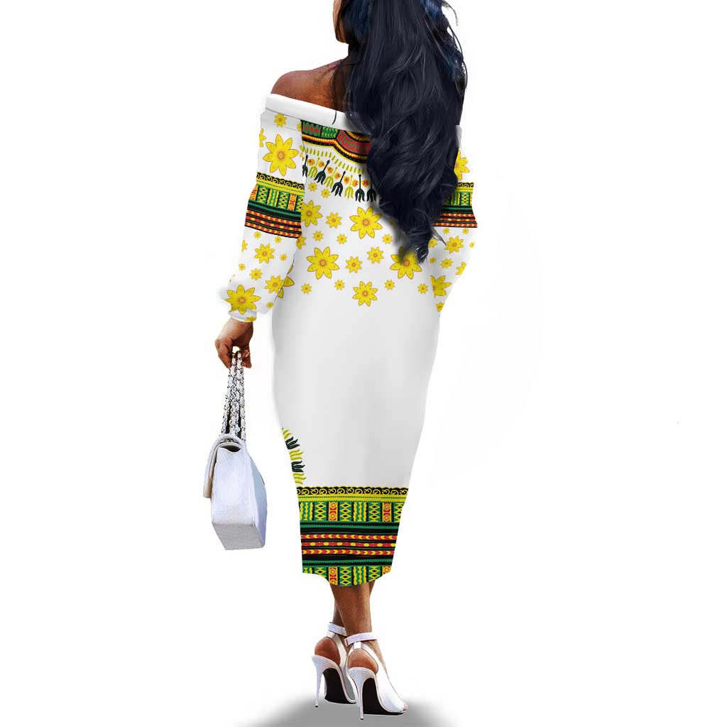 Afro Enkutatash Dashiki and Adey Abeba Off The Shoulder Long Sleeve Dress
