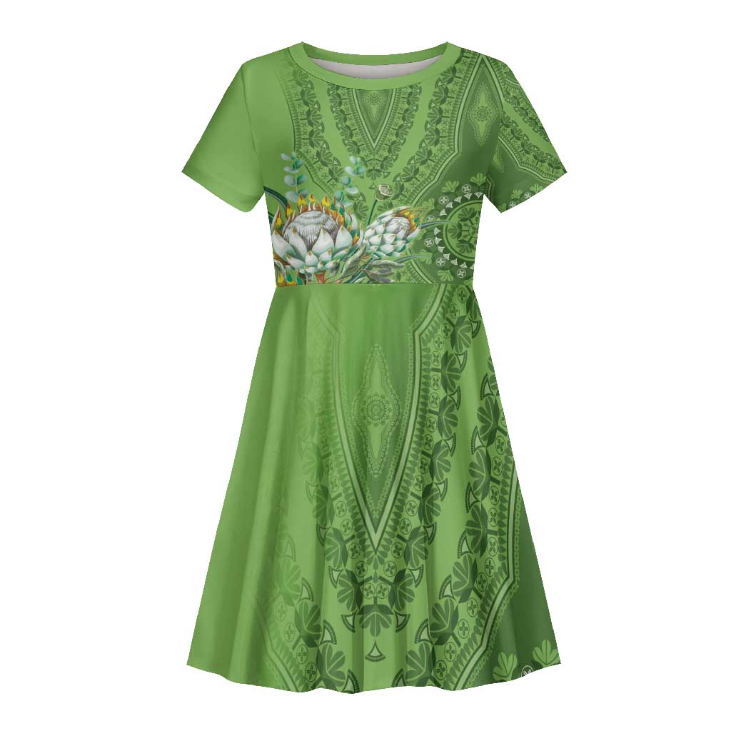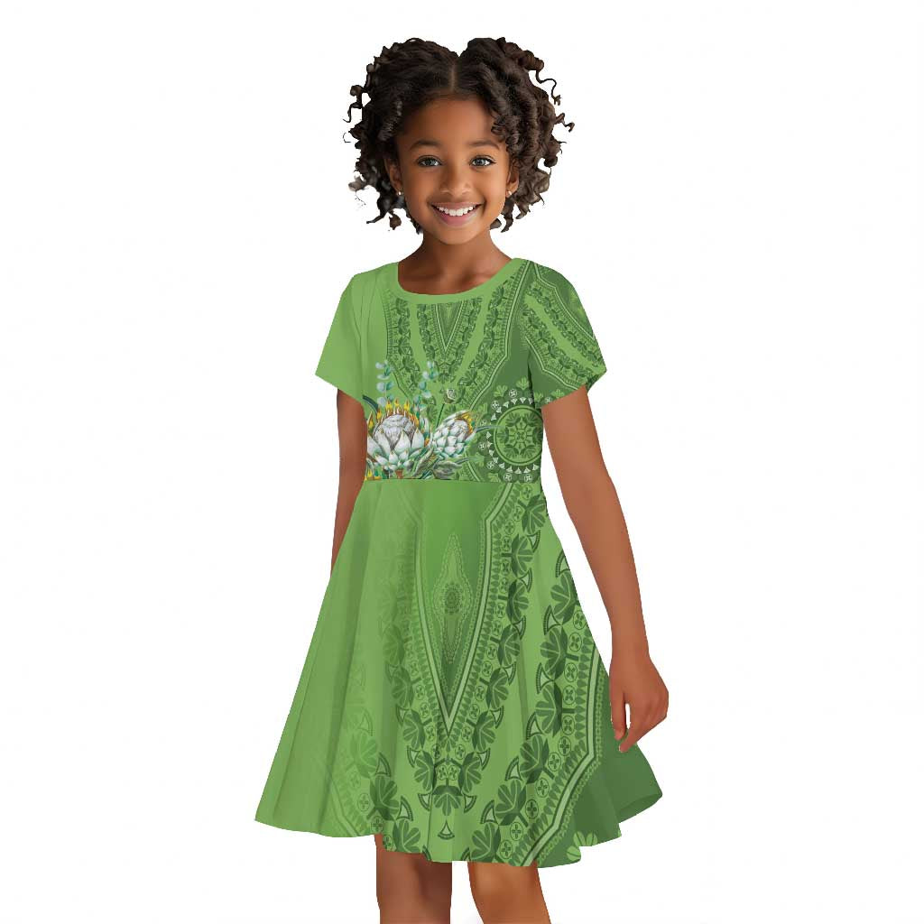 Afro King Proteas Dashiki Motif Kid Short Sleeve Dress Green Style