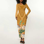 Afro King Proteas Dashiki Motif Long Sleeve Bodycon Dress Gold Style