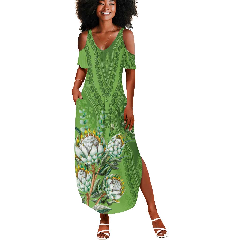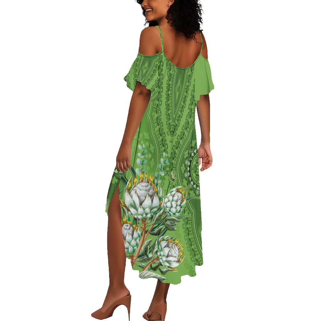 Afro King Proteas Dashiki Motif Summer Maxi Dress Green Style