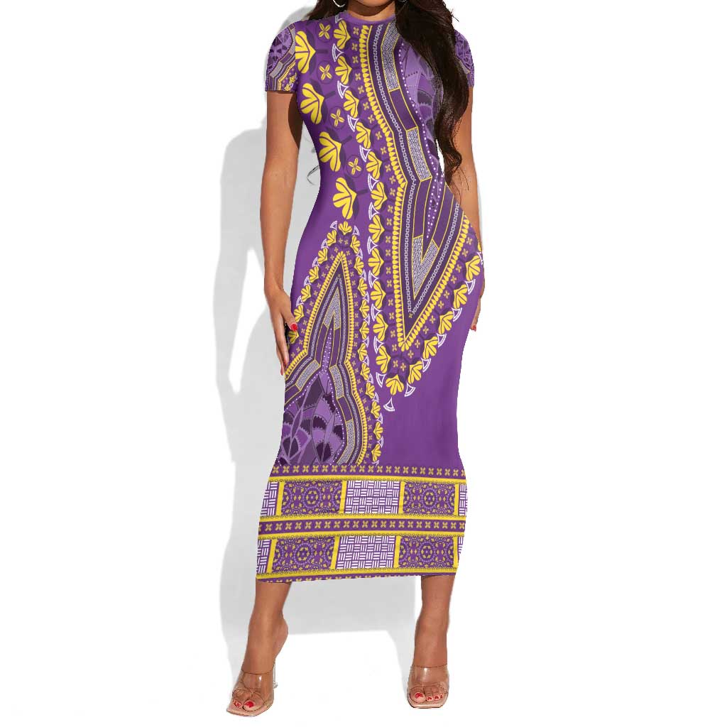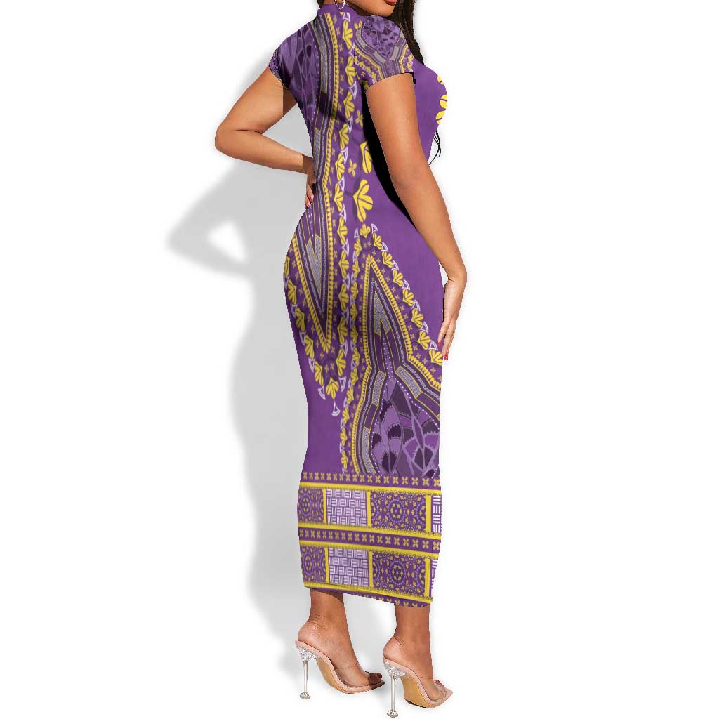Dashiki Short Sleeve Bodycon Dress Luxury Afro - Violet