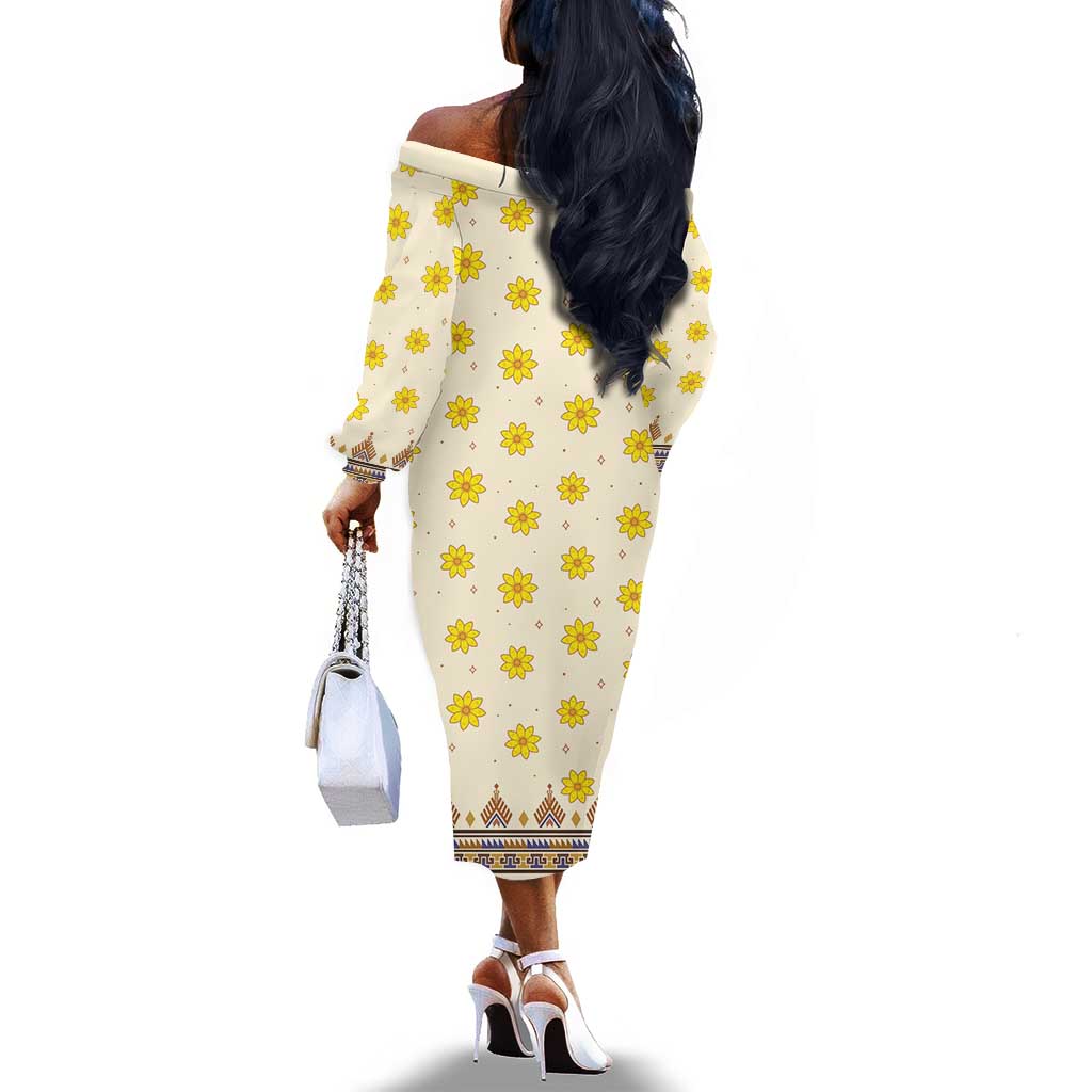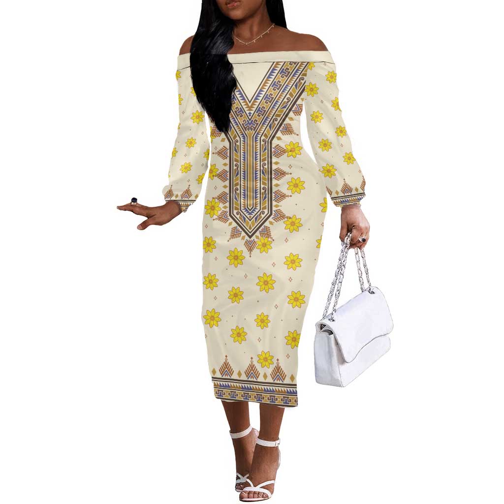 Enkutatash Dashiki Adey Abeba Pattern Off The Shoulder Long Sleeve Dress