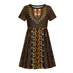 Gold Dashiki and Tapa Pattern Kid Short Sleeve Dress Africa-Polynesia Together Culture
