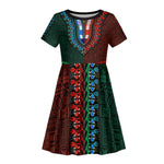 Green-red Dashiki and Tapa Pattern Kid Short Sleeve Dress Africa-Polynesia Together Culture