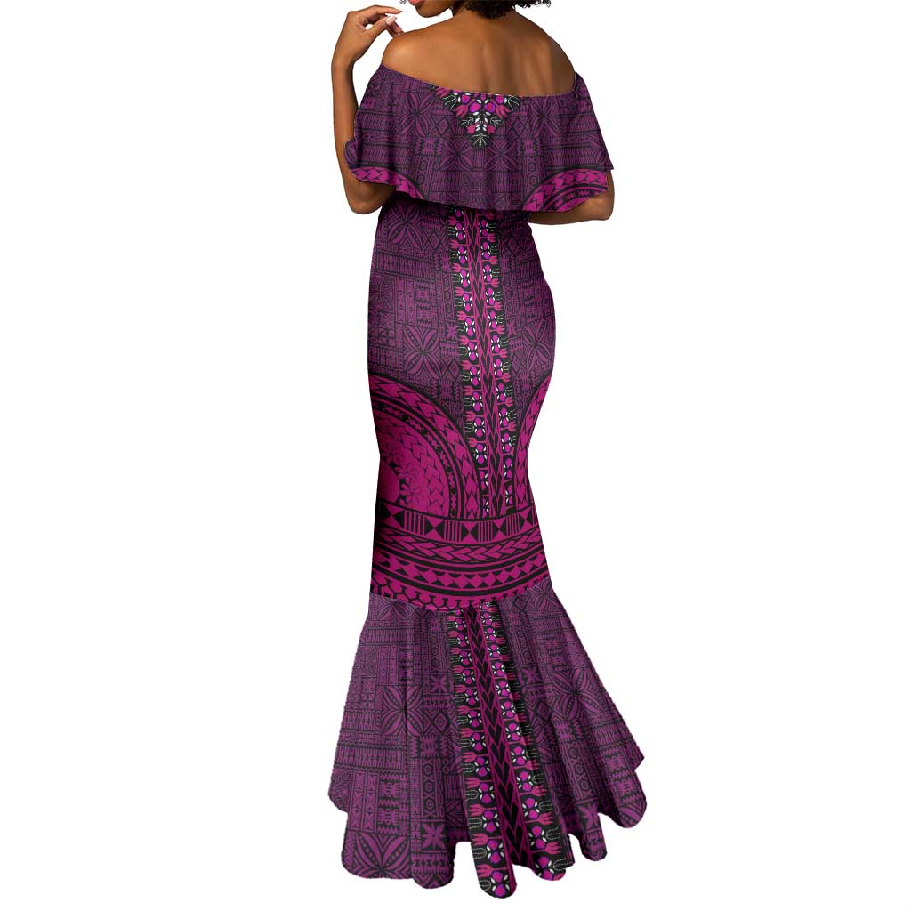 Pink Dashiki and Tapa Pattern Mermaid Dress Africa-Polynesia Together Culture