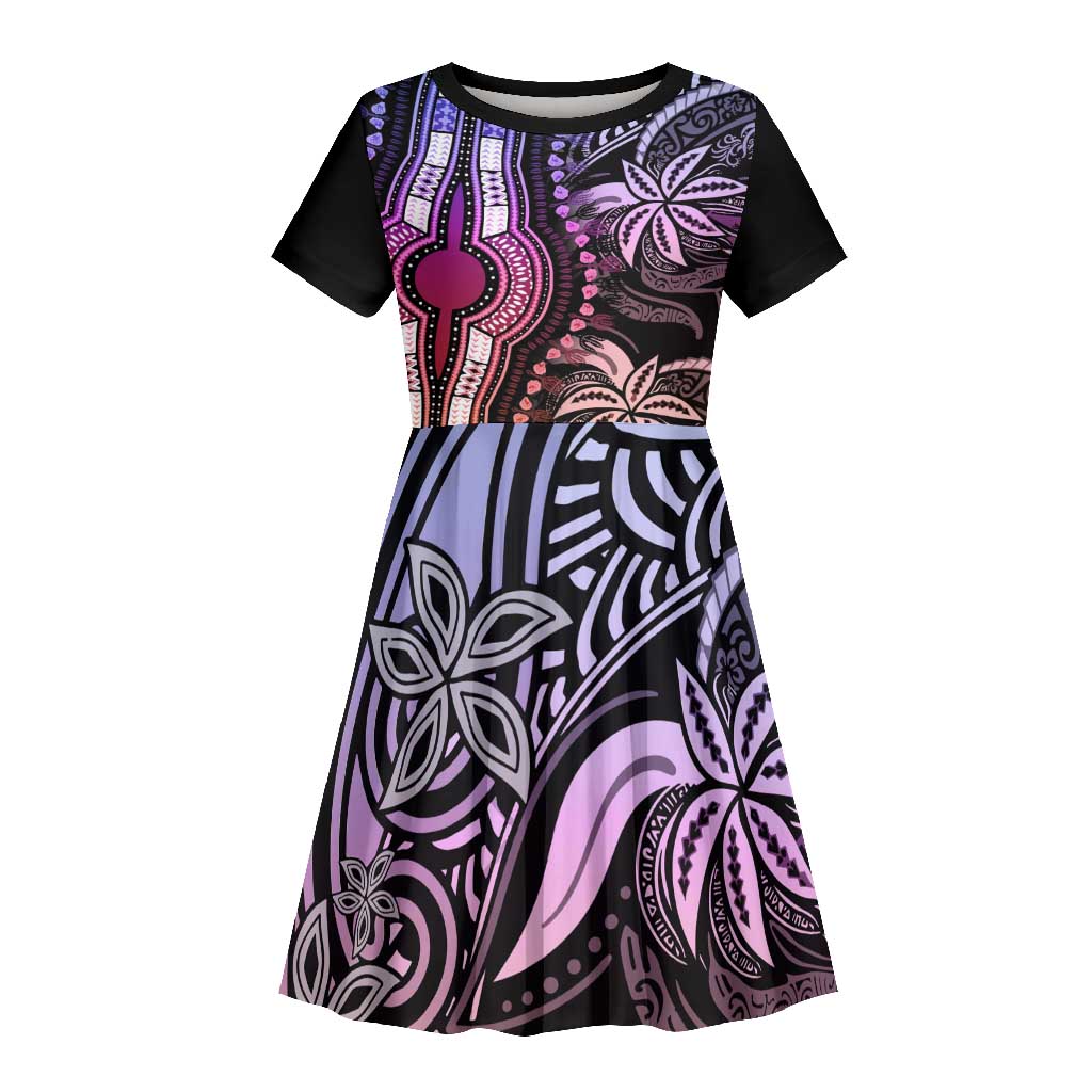 Polynesia Mixed African Dashiki Kid Short Sleeve Dress Afro-pacific Culture - Pastel