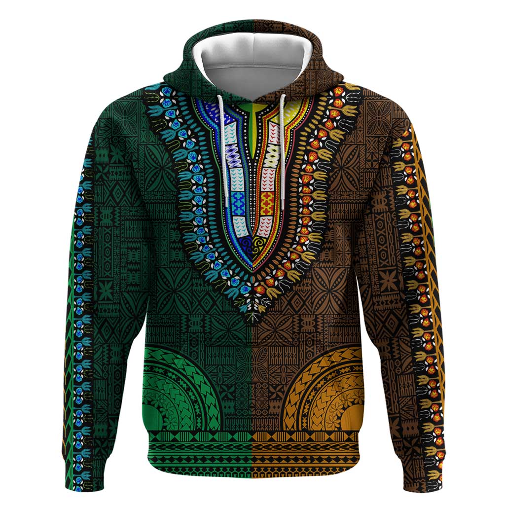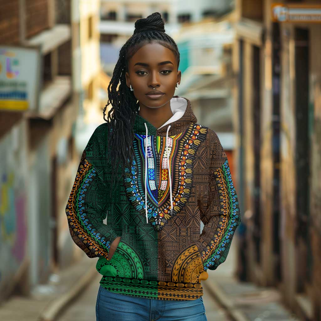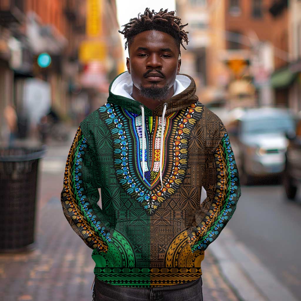 Green-gold Dashiki and Tapa Pattern Hoodie Africa-Polynesia Together Culture