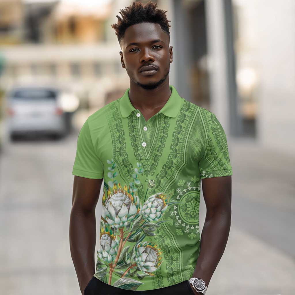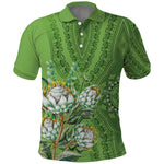 Afro King Proteas Dashiki Motif Polo Shirt Green Style
