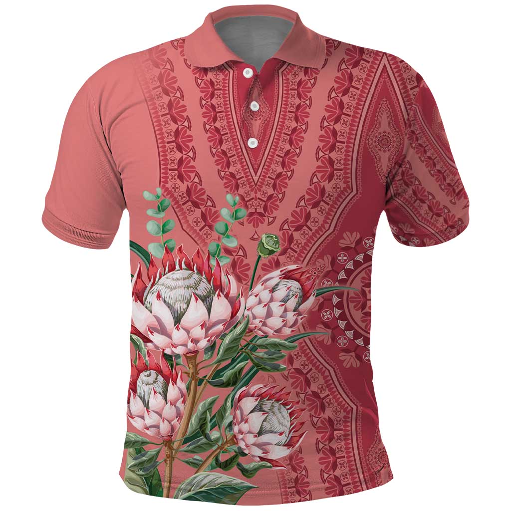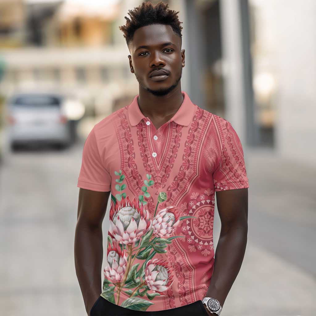 Afro King Proteas Dashiki Motif Polo Shirt Peach Style