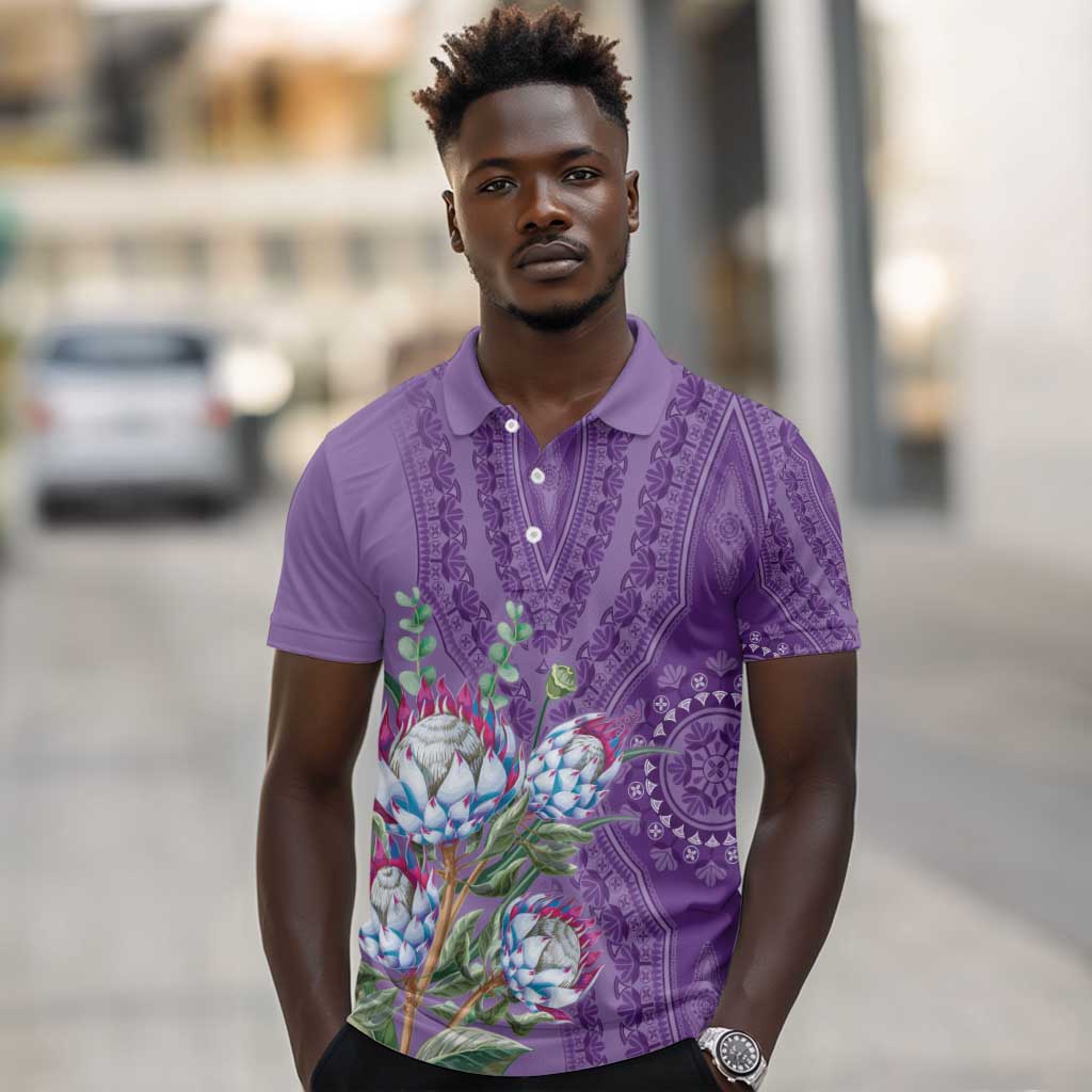Afro King Proteas Dashiki Motif Polo Shirt Violet Style