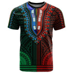 African Dashiki and Polynesian Pattern T shirt Half Green-Red
