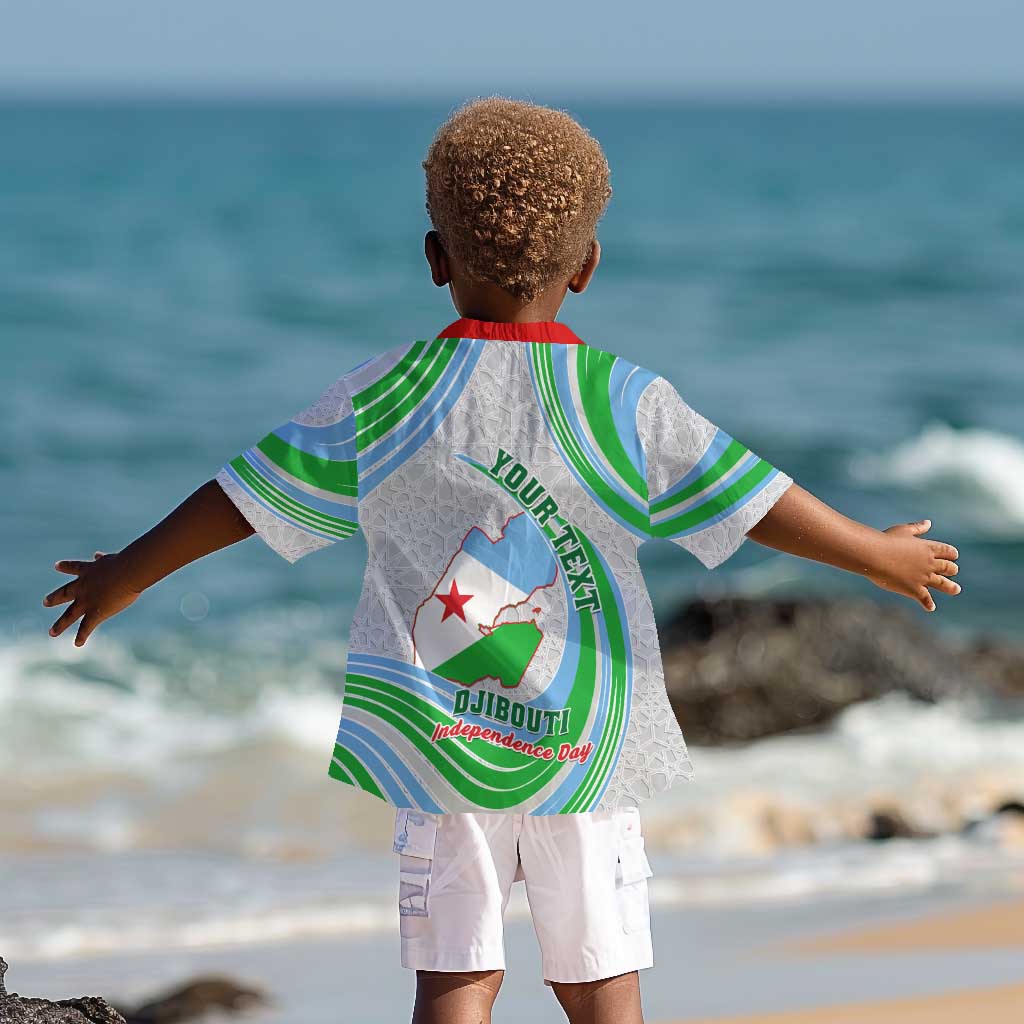 Custom Djibouti Independence Day Kid Hawaiian Shirt - June 27, Jabuuti Emblem with Islamic Pattern