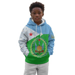 Djibouti Kid Hoodie Flag Tribal Motifs and Red Star Symbol of Unity