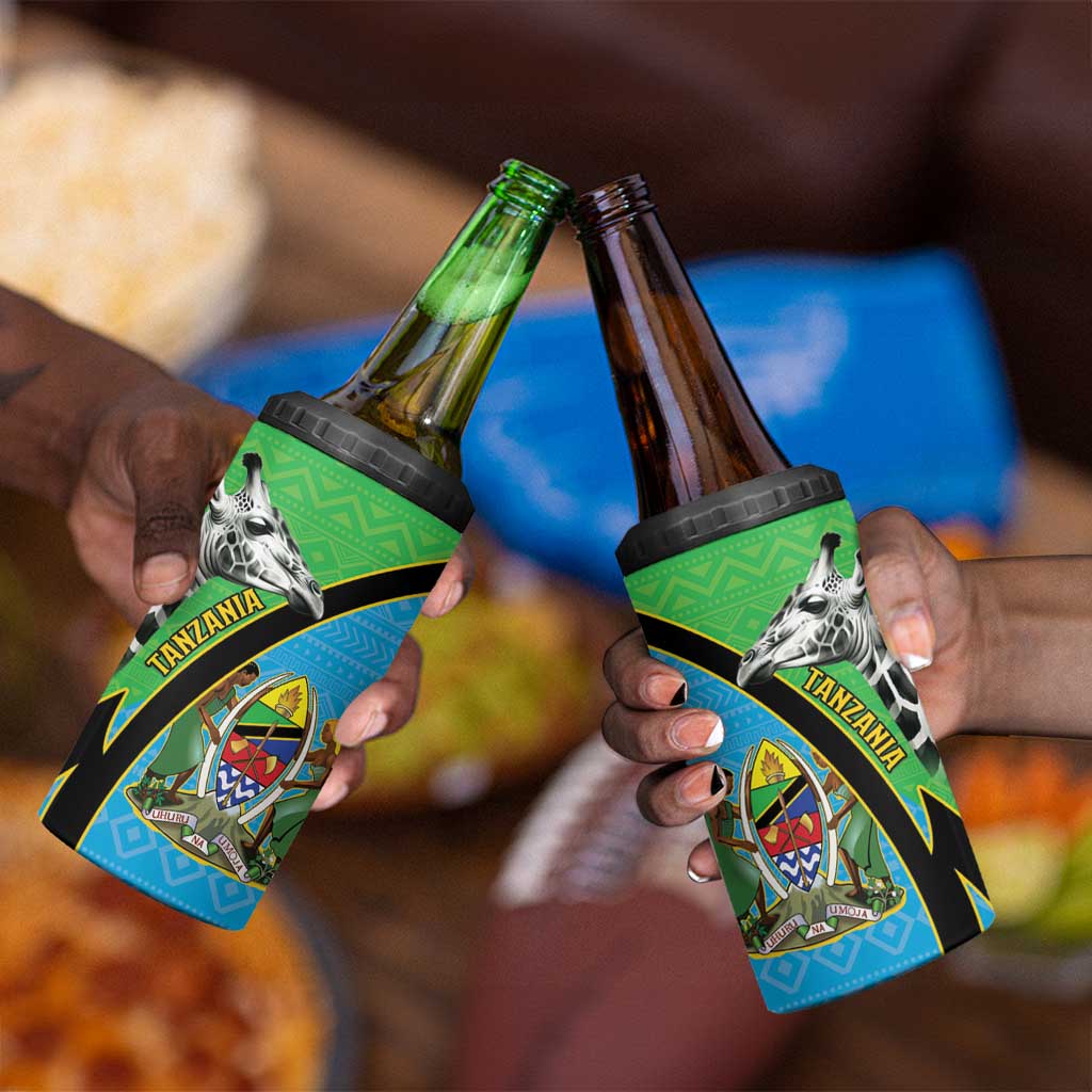 Afro Tanzania Giraffe 4 in 1 Can Cooler Tumbler Coat Of Arms Curve Style