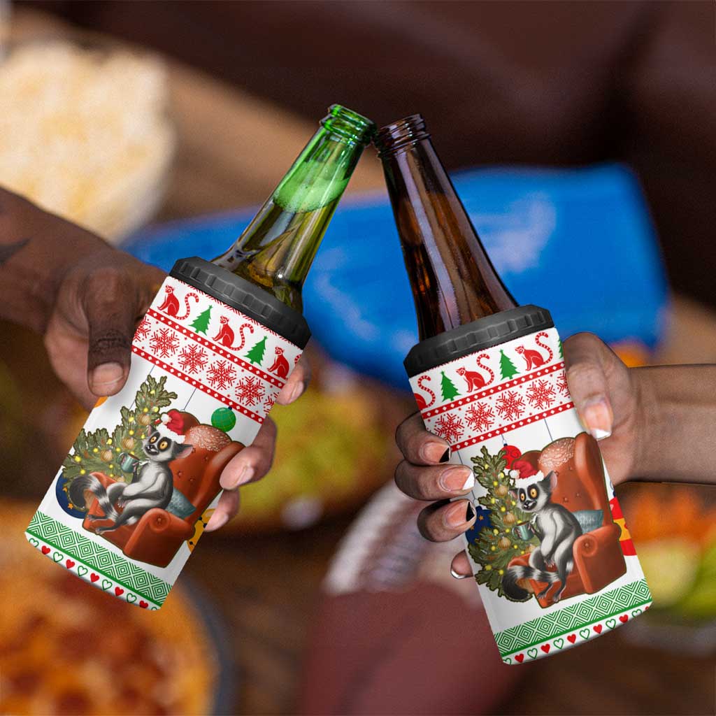 Madagascar Christmas 4 in 1 Can Cooler Tumbler Lemur Santa Hat Holiday Tree