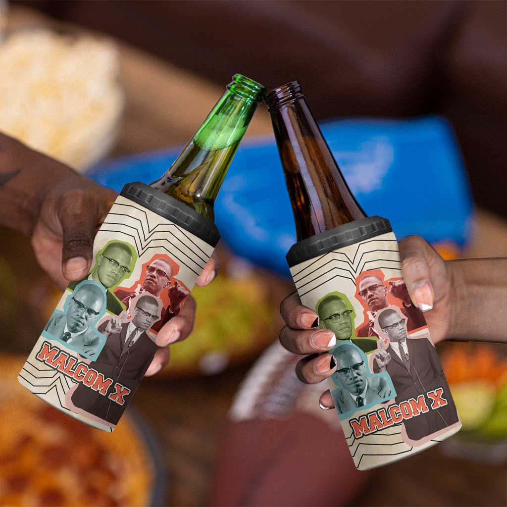 Malcolm X 4 in 1 Can Cooler Tumbler Pop Art Portrait Collage Civil Rights Activist Retro Style Design