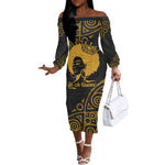 Educated Black Queen Off The Shoulder Long Sleeve Dress African Women