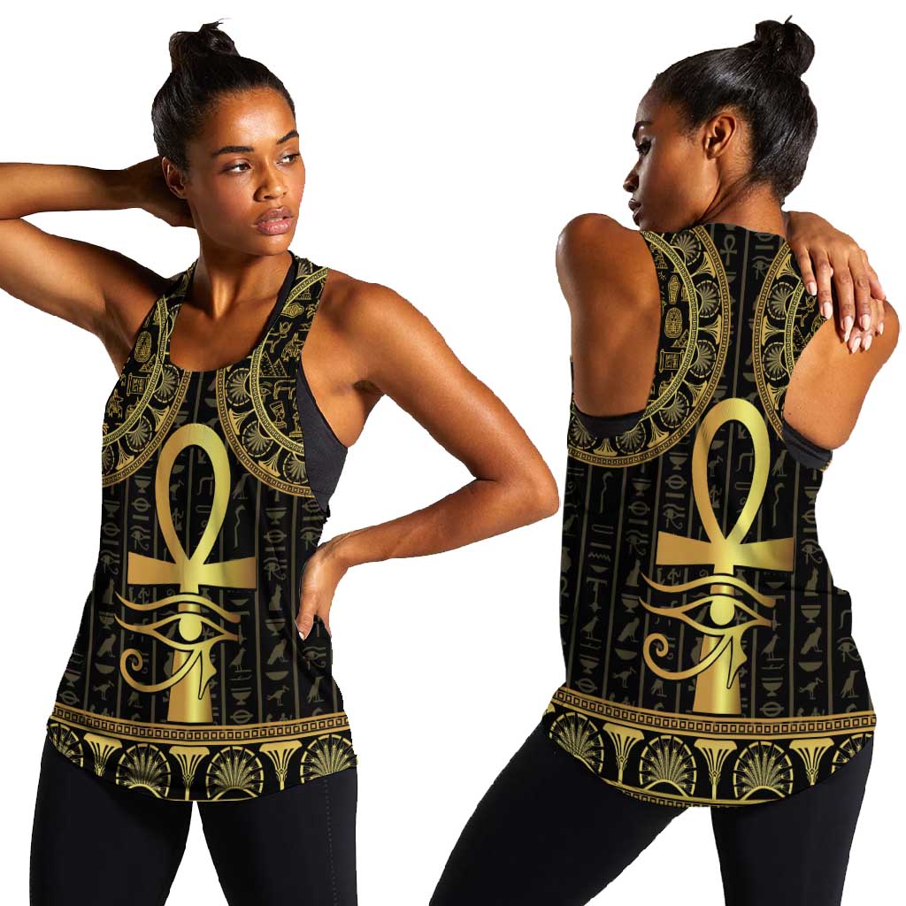 Afro Ancient Egypt Ankh and Eye Of Horus Women Racerback Tank Egyptian Hieroglyphs
