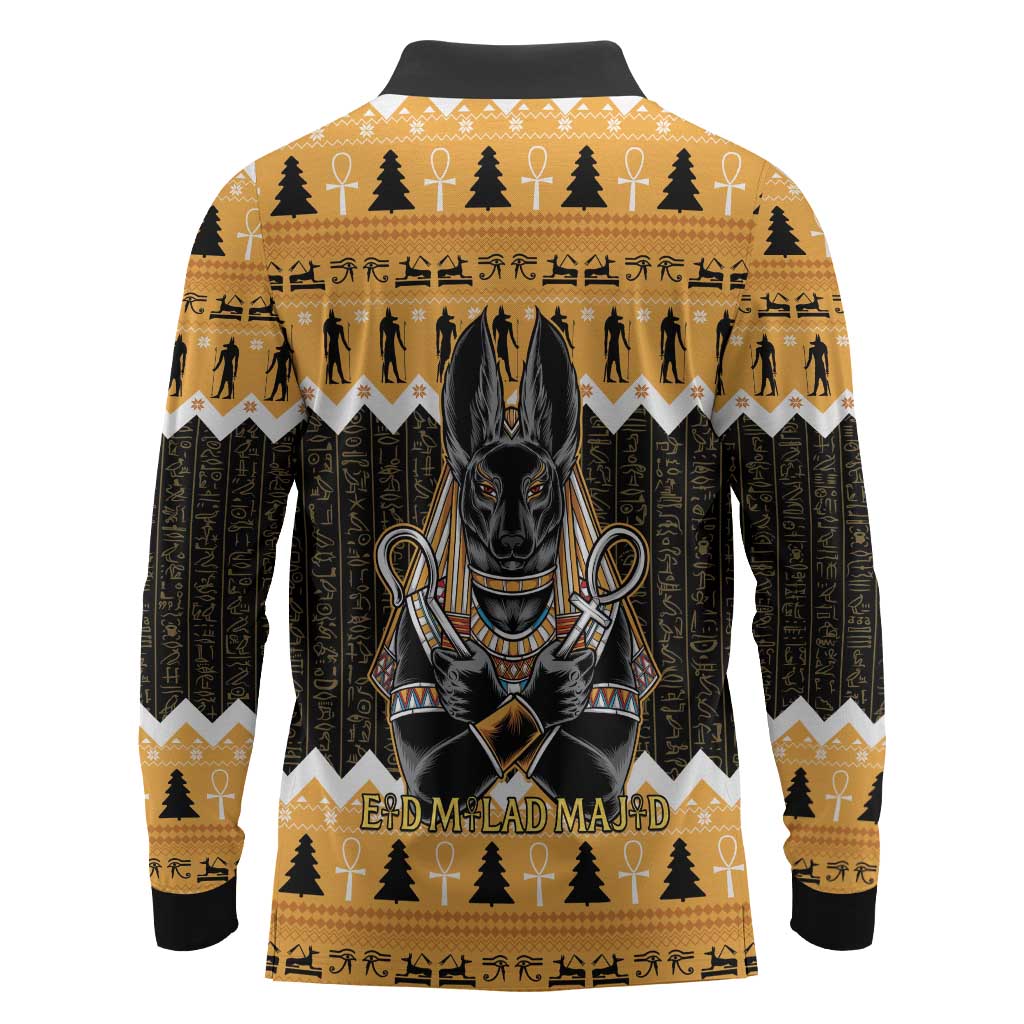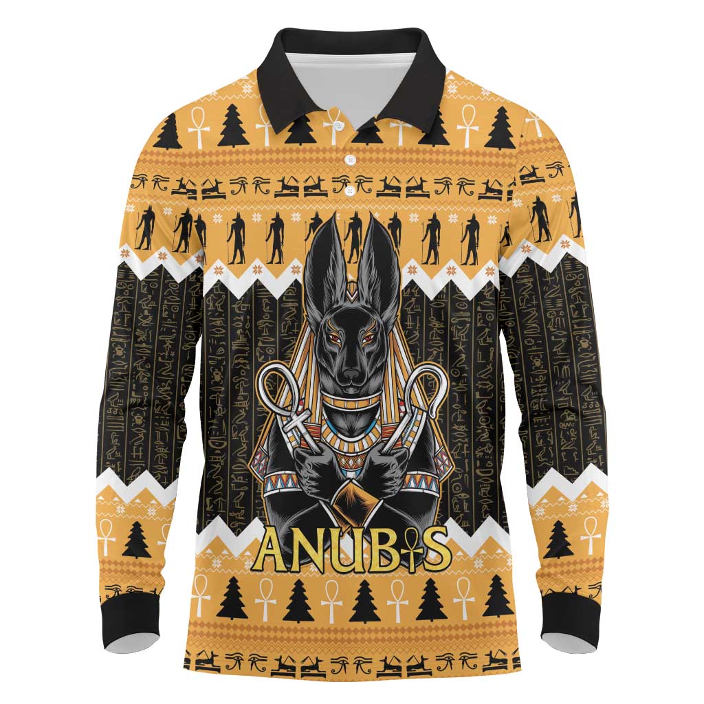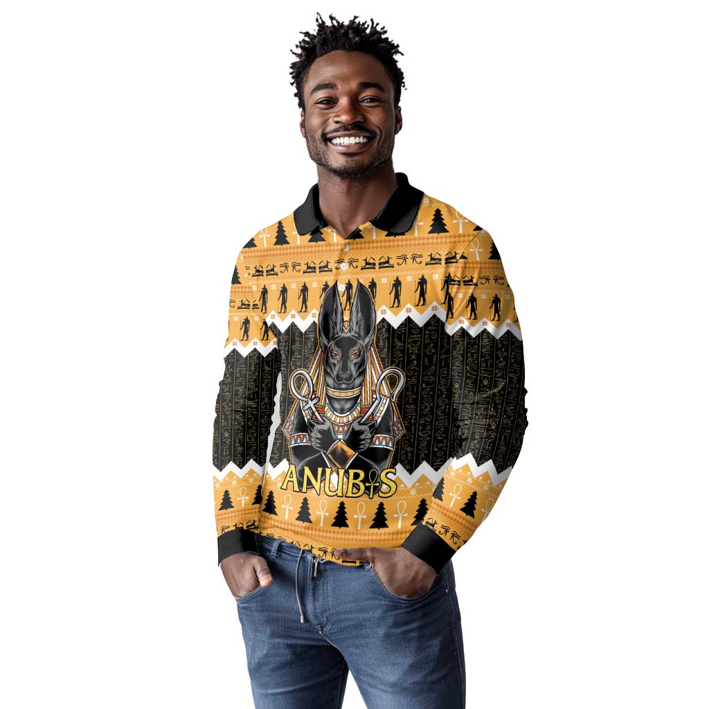 Afro Ancient Egyptian Long Sleeve Polo Shirt Anubis - Merry Christmas