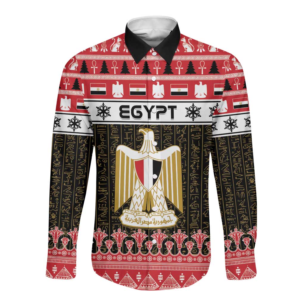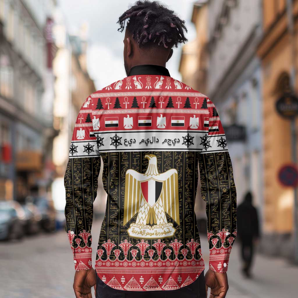 Afro Egypt Christmas Long Sleeve Button Shirt Coat Of Arms Mix Egyptian Pattern