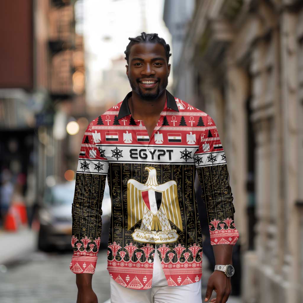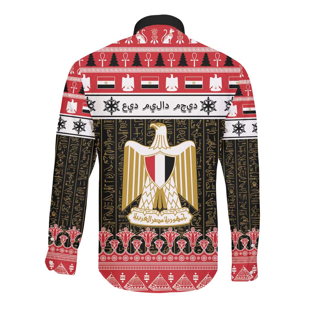 Afro Egypt Christmas Long Sleeve Button Shirt Coat Of Arms Mix Egyptian Pattern LT15