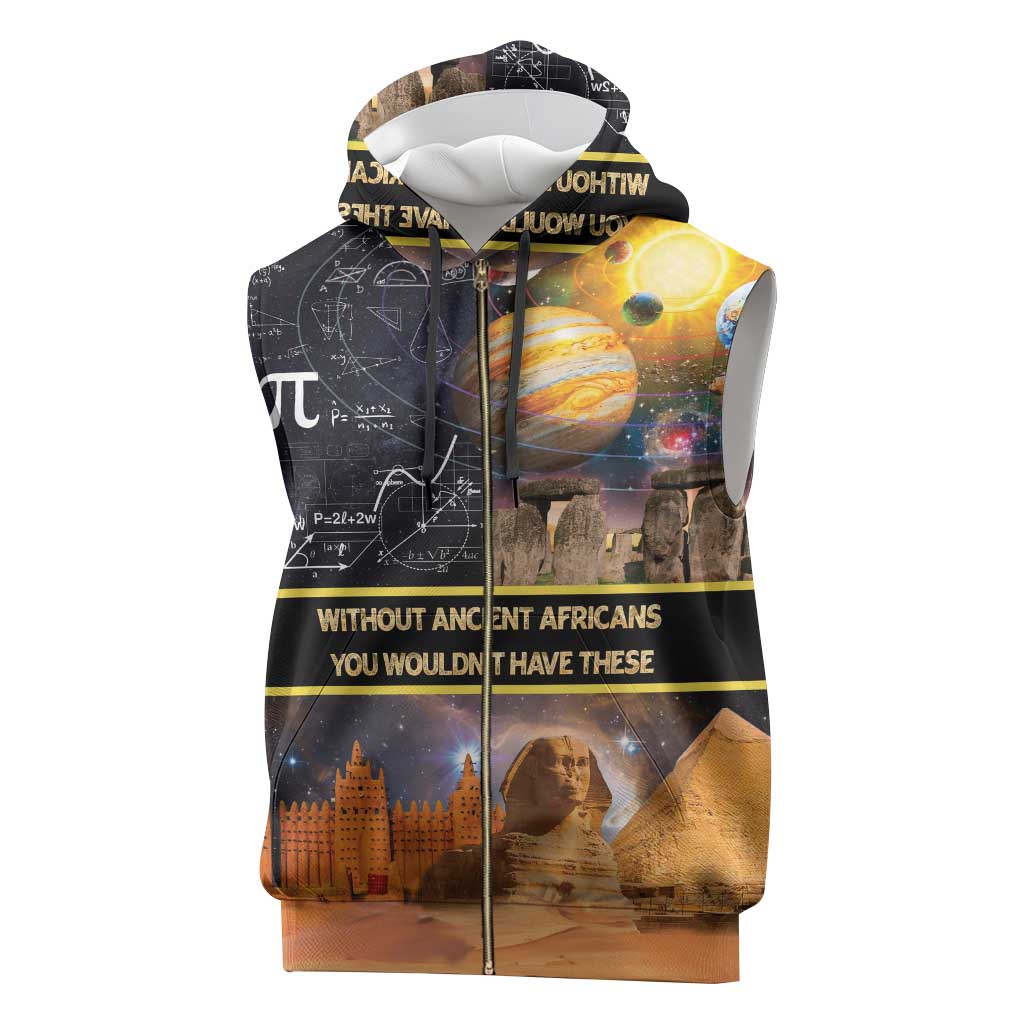 Afro Egyptian Pyramids Sleeveless Hoodie Ancient African Achievements Galaxy