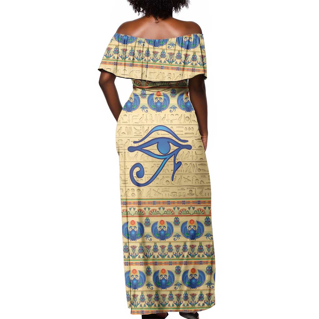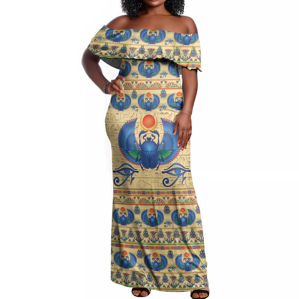 Ancient Egypt Scarab Beetle Off Shoulder Maxi Dress
