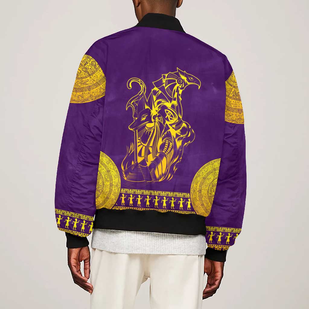 Anubis and Horus Bomber Jacket Egyptian God Purple