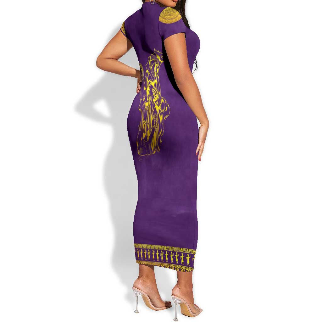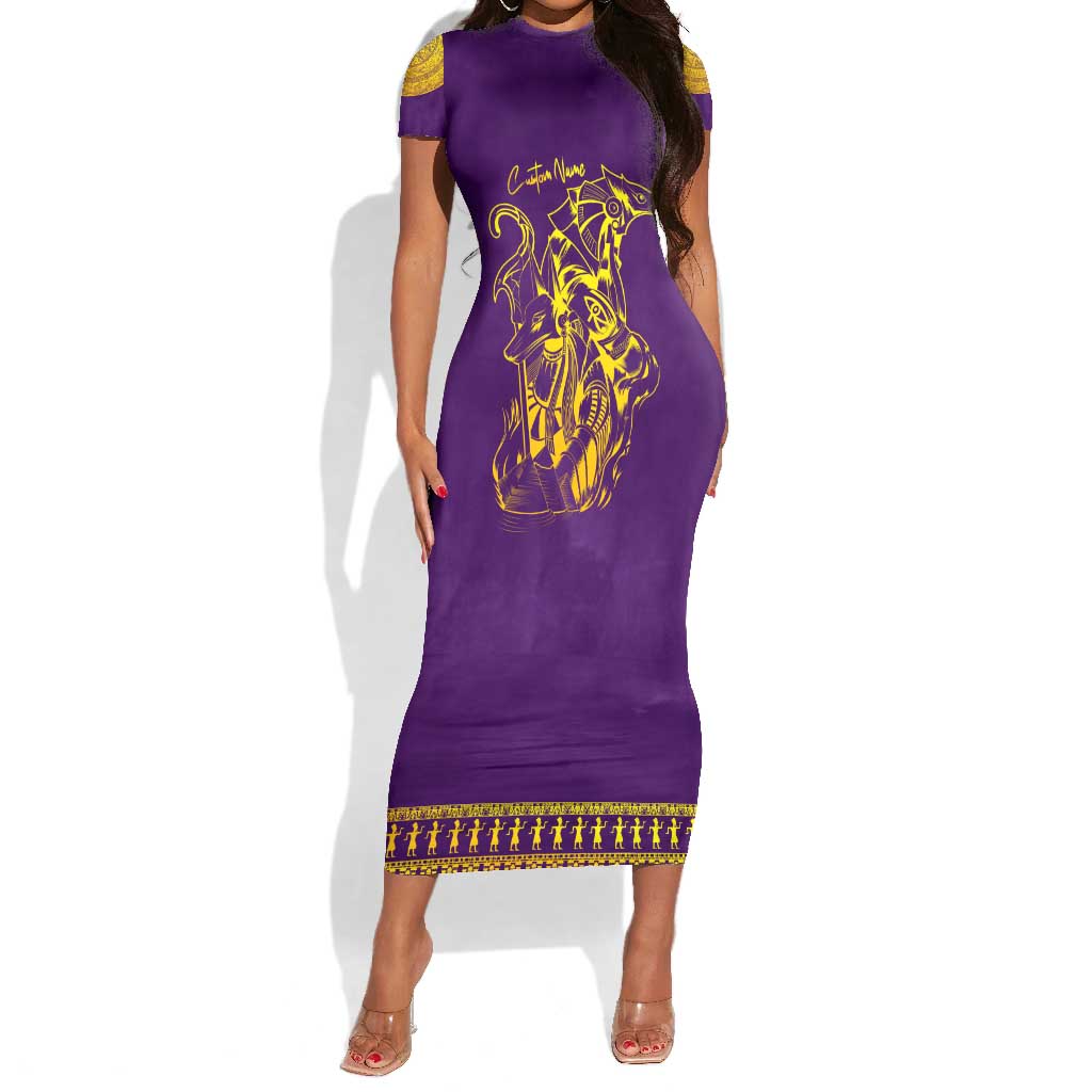 Anubis and Horus Short Sleeve Bodycon Dress Egyptian God Purple