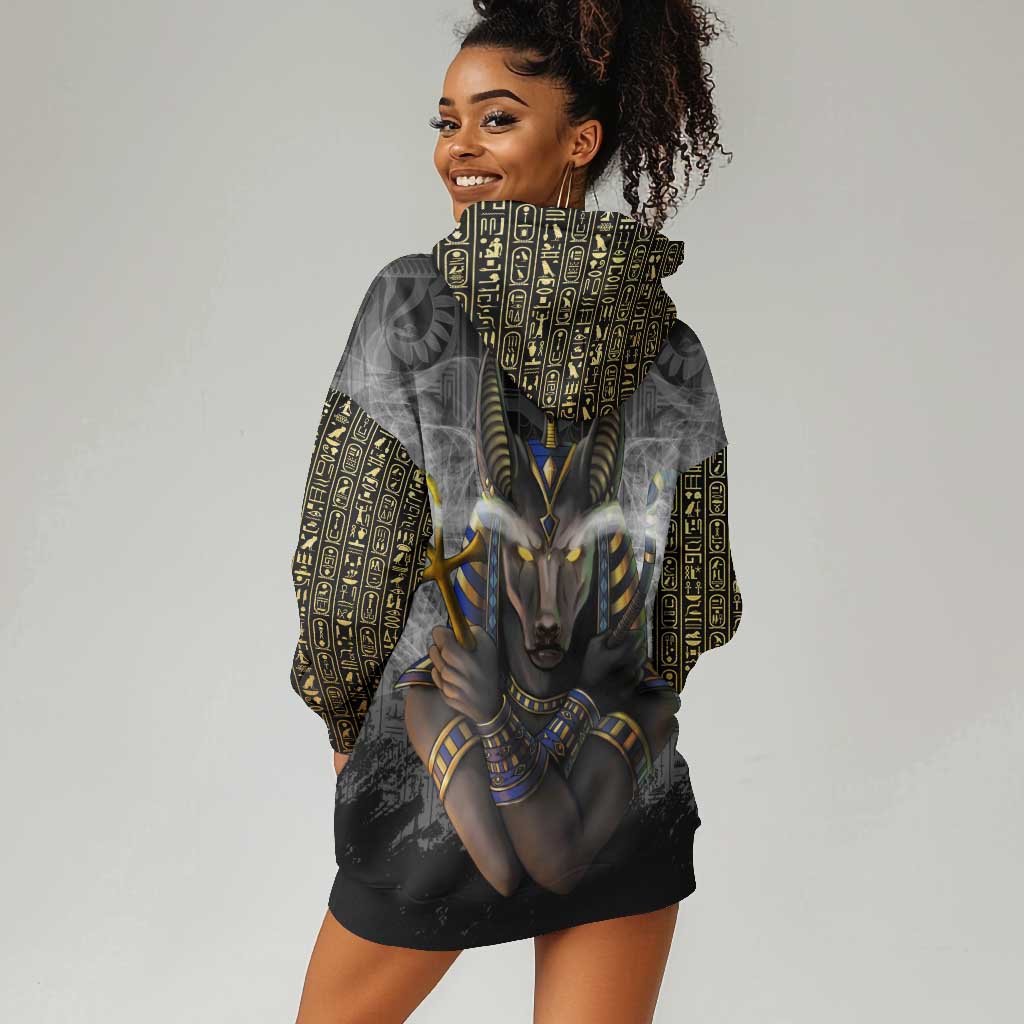 Anubis Hoodie Dress Egypt Pattern Black