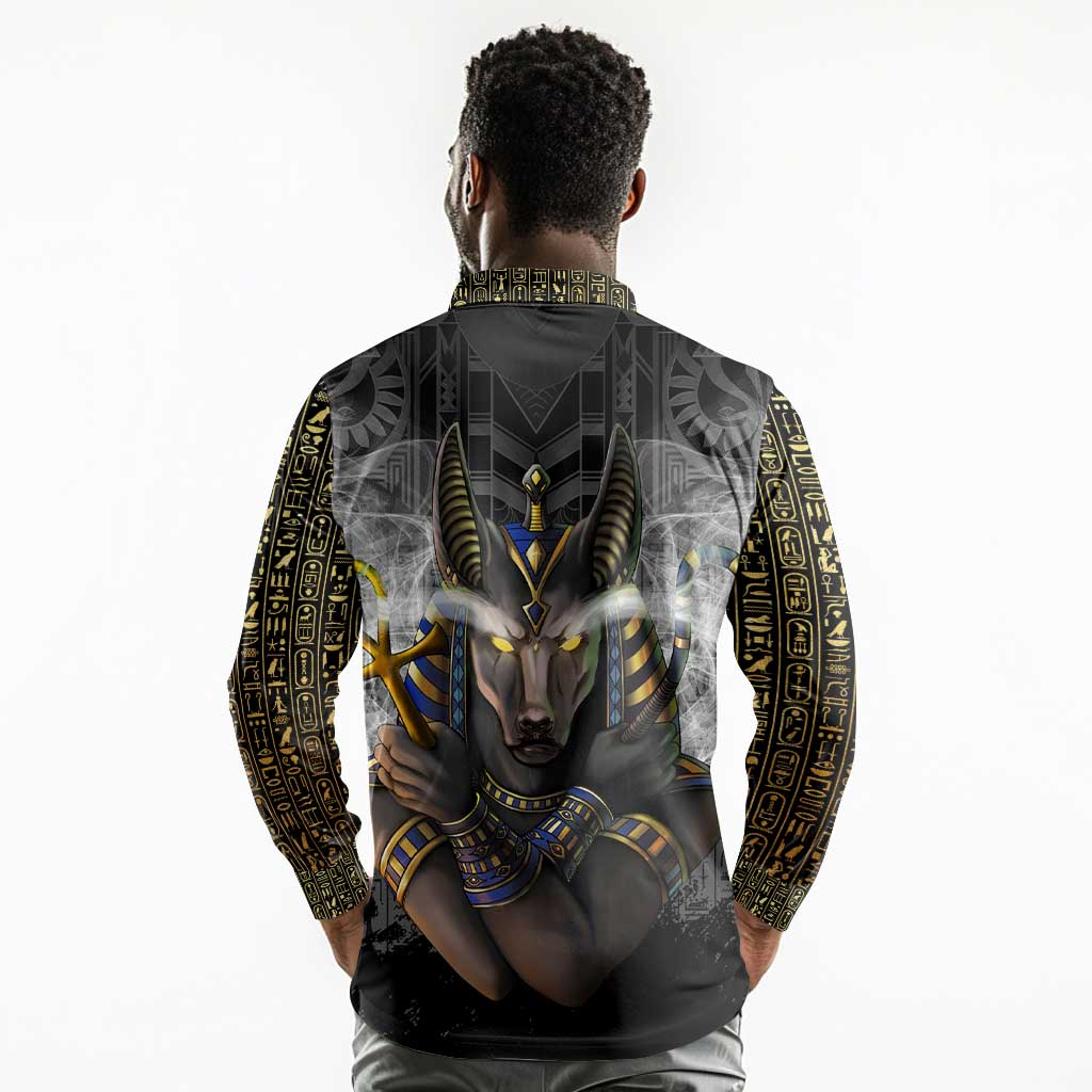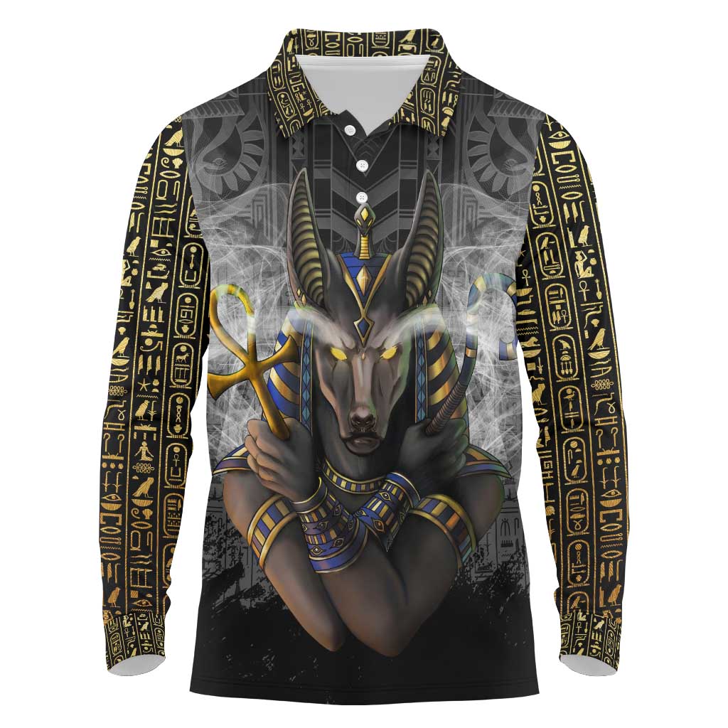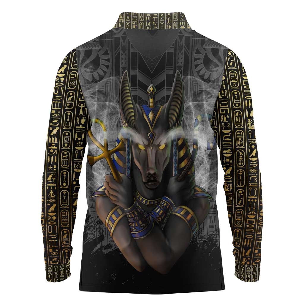 Anubis Long Sleeve Polo Shirt Egypt Pattern Black