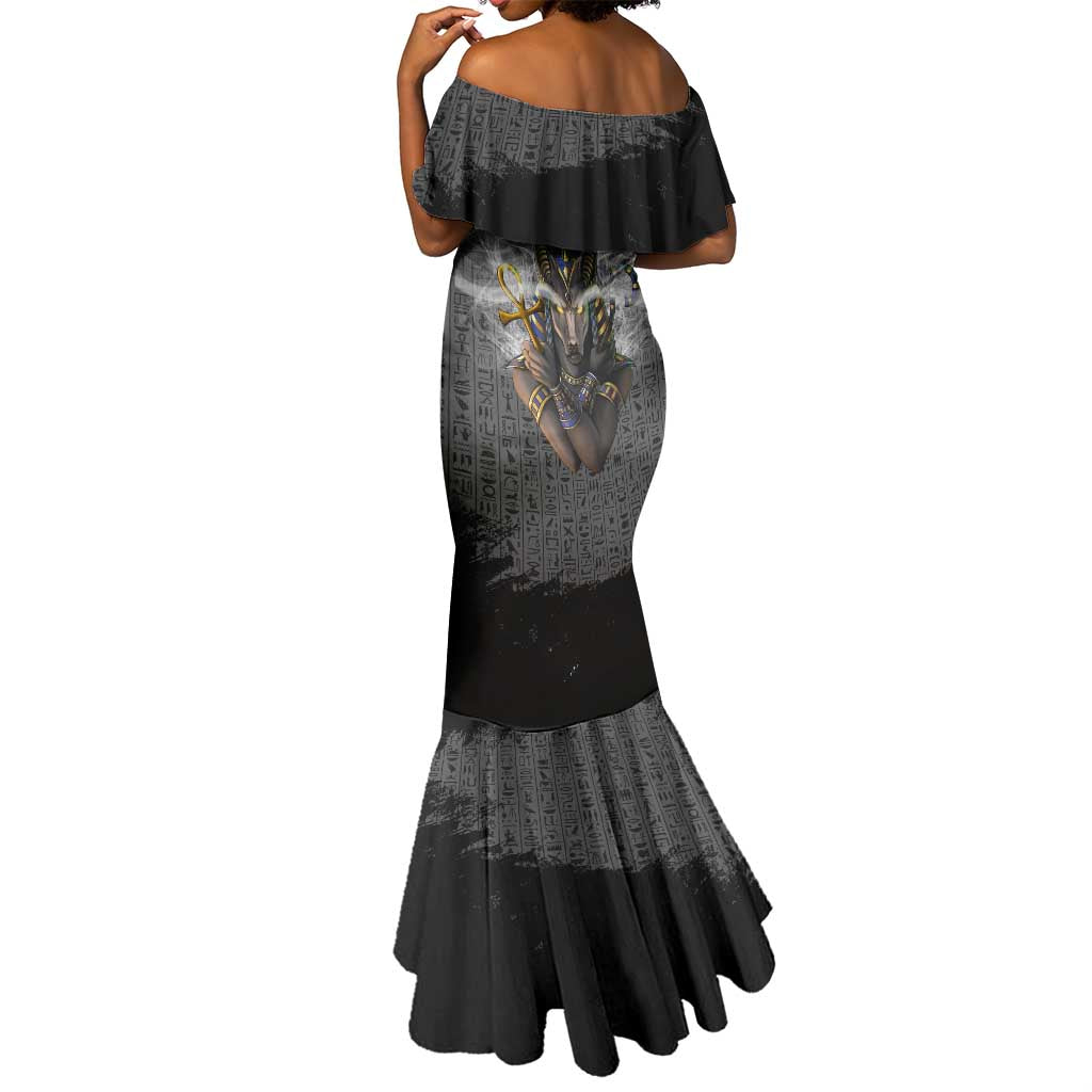 Anubis Mermaid Dress Egypt Pattern Black