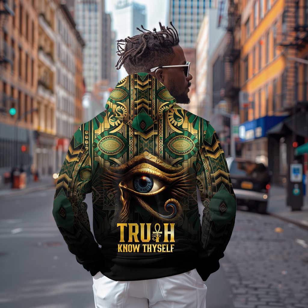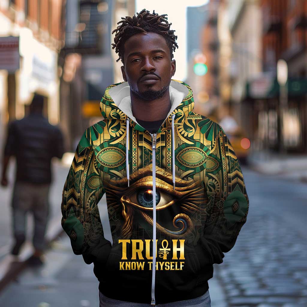 Egypt Eye of Horus Zip Hoodie Golden Ancient Egypt Pattern