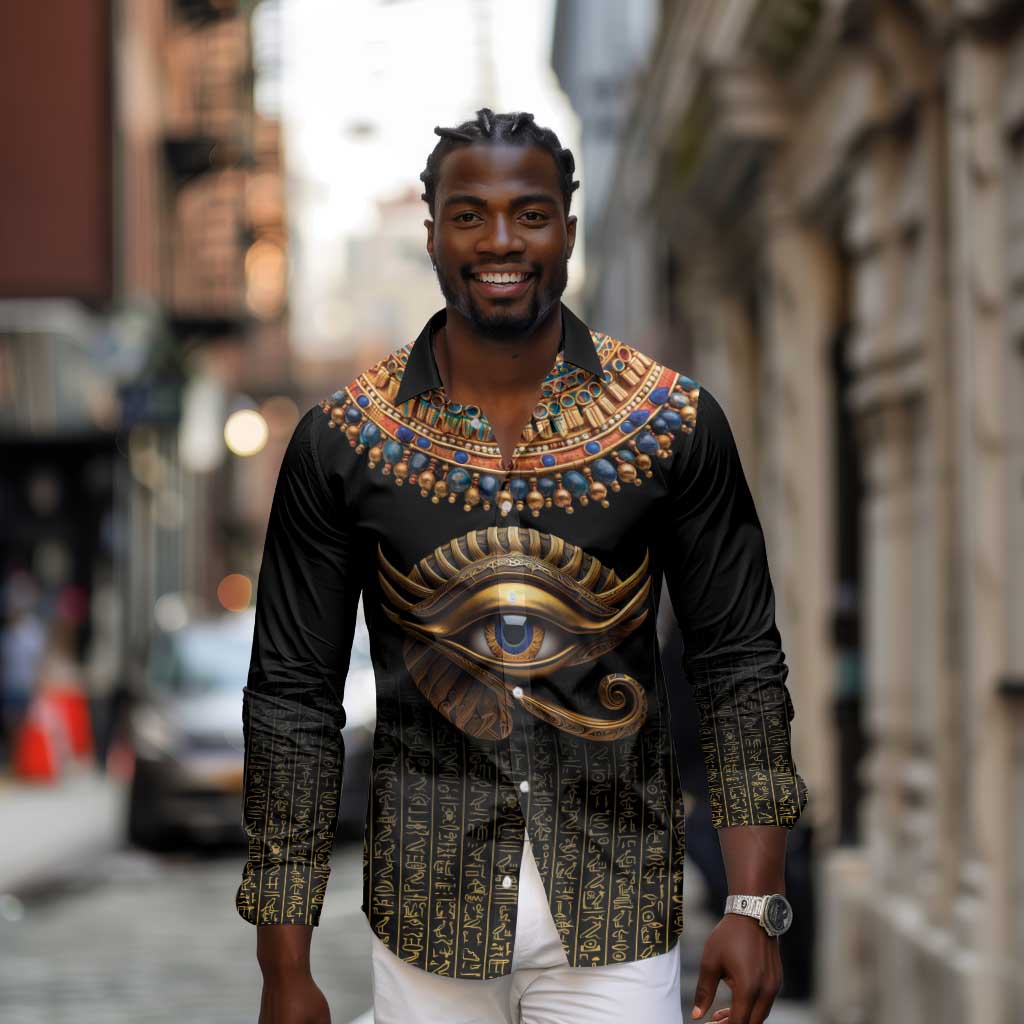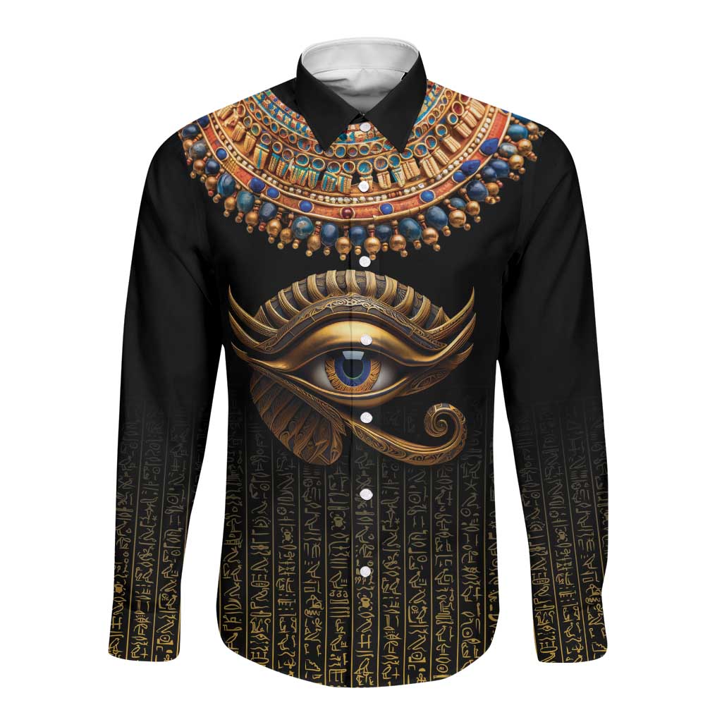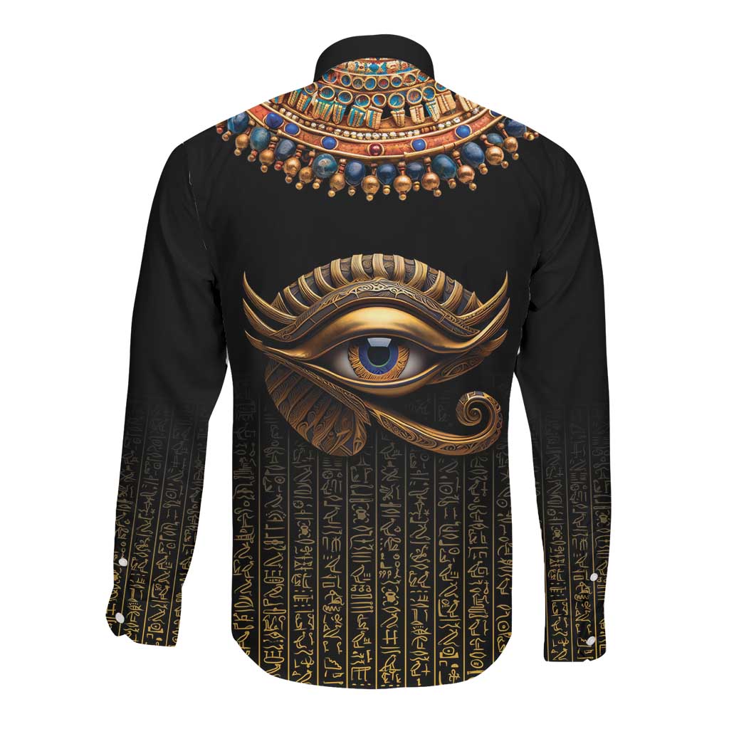 Egypt Eyes Of Horus Long Sleeve Button Shirt with Egyptian Hieroglyphs