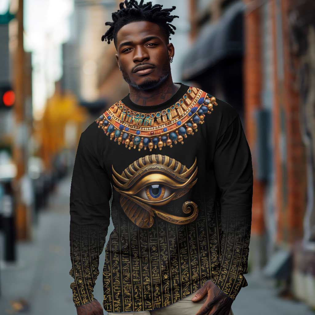 Egypt Eyes Of Horus Long Sleeve Shirt with Egyptian Hieroglyphs