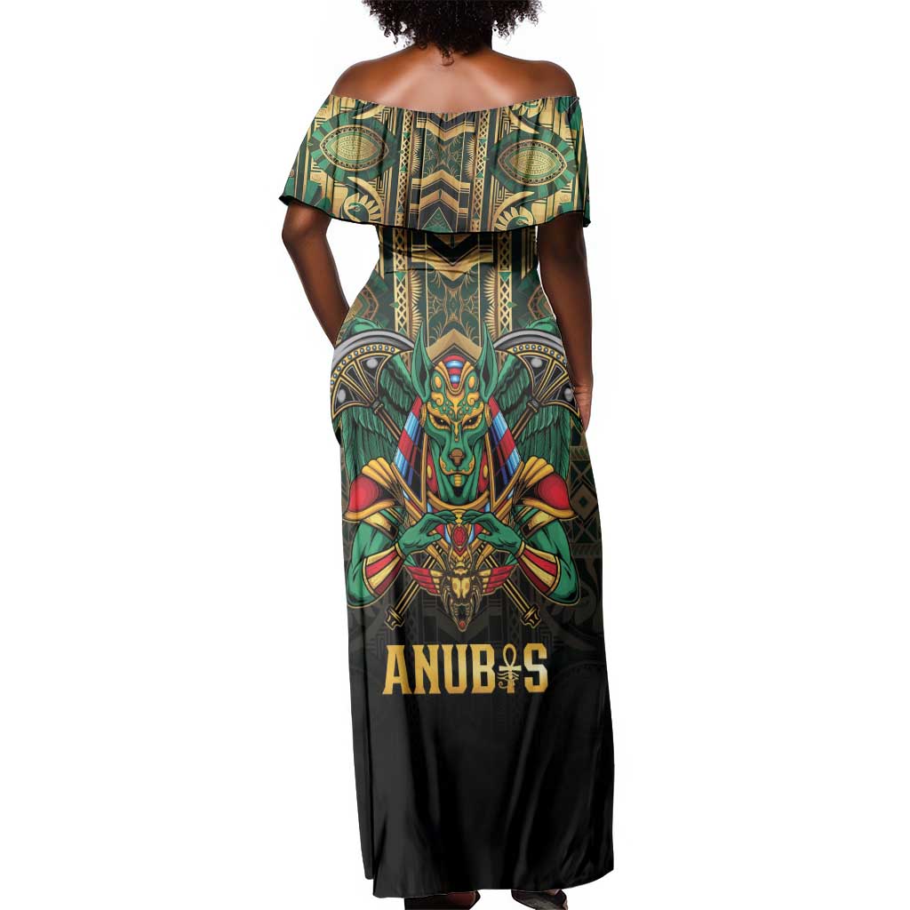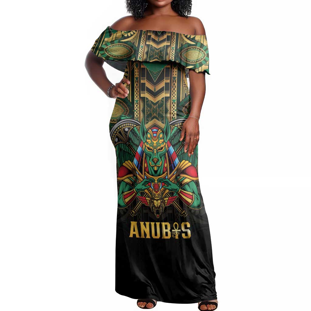 Ancient Egypt Off Shoulder Maxi Dress Anubis Egyptian