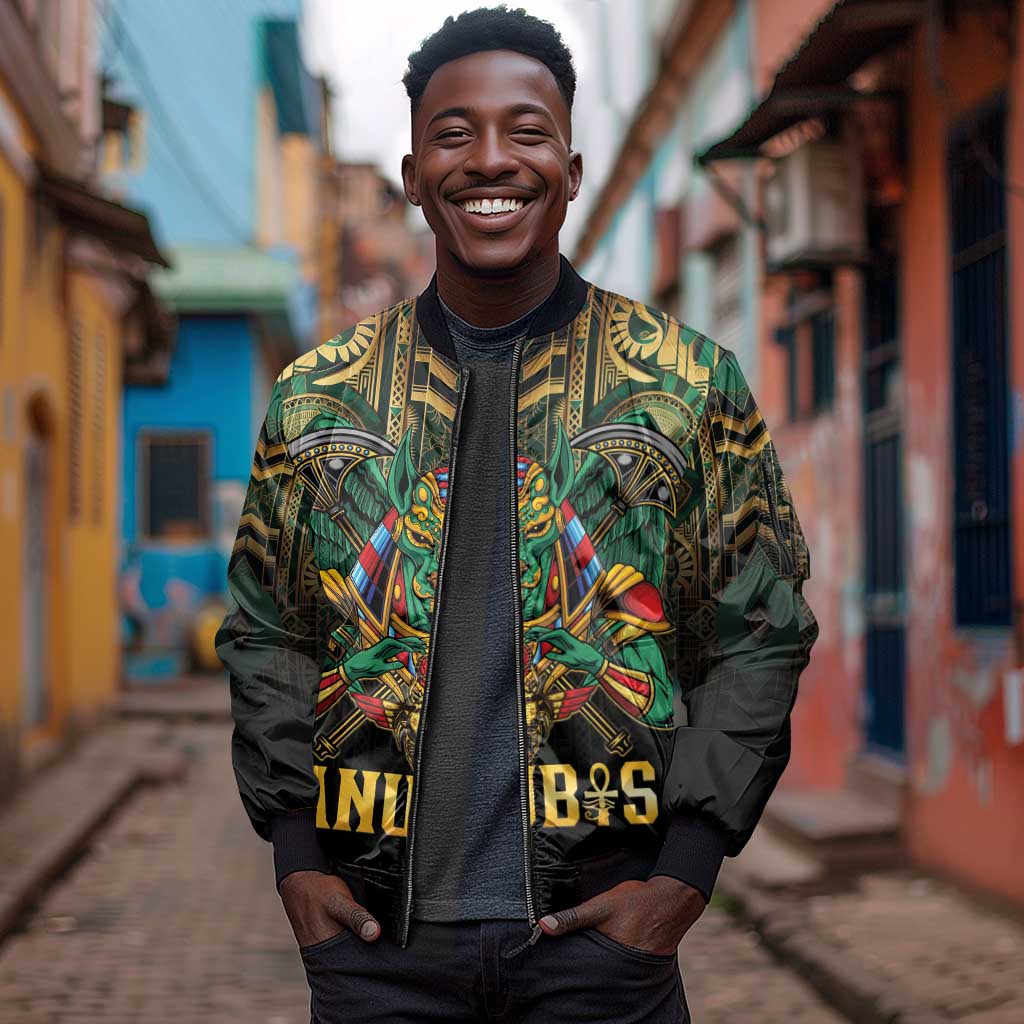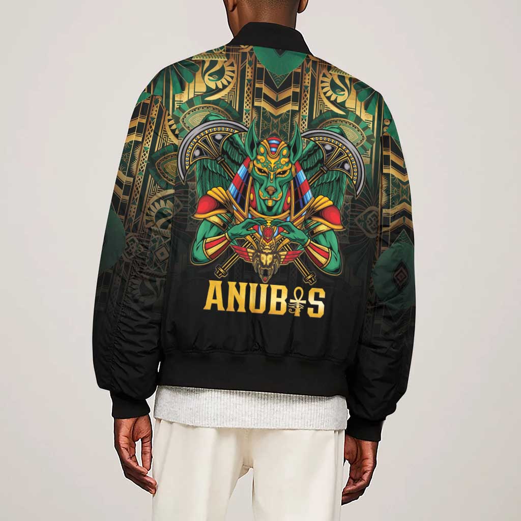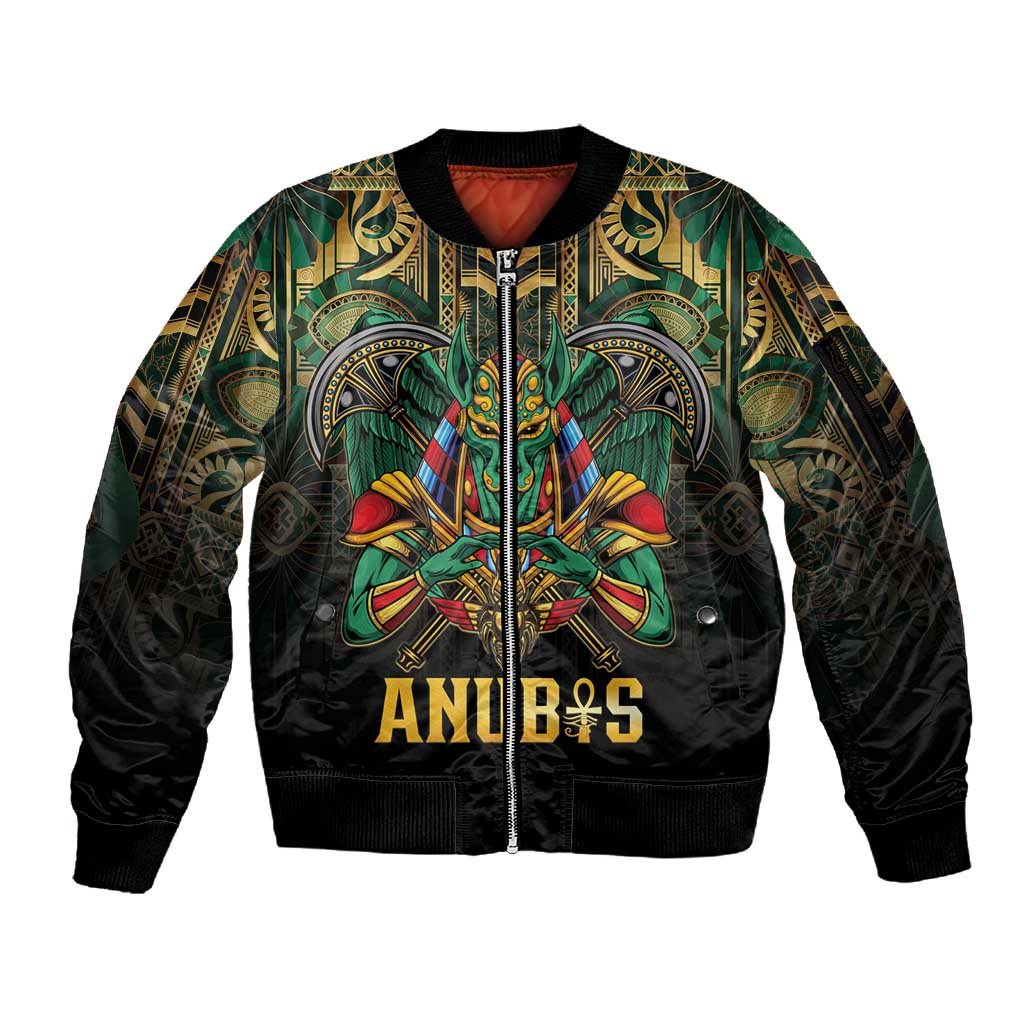 Ancient Egypt Sleeve Zip Bomber Jacket Anubis Egyptian