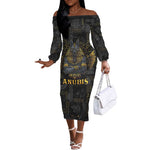 Anubis Egyptian God of Death Off The Shoulder Long Sleeve Dress