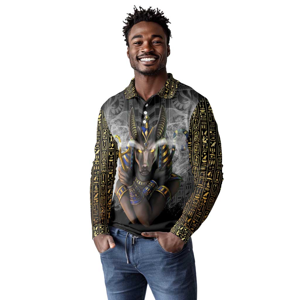 Anubis Long Sleeve Polo Shirt Egypt Pattern Black